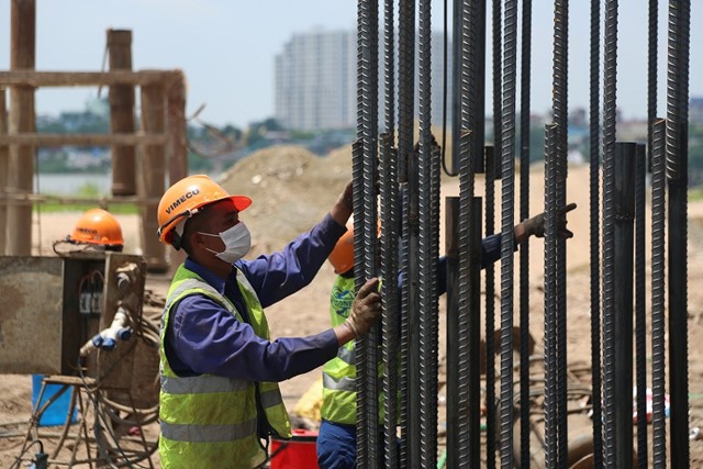 Trong những ngày dịch bệnh Covid-19 ở Hà Nội có những diễn biến phức tạp, các công trình trọng điểm của TP Hà Nội vẫn đang được thi công đảm bảo an toàn, tiến độ. Nỗ lực vượt qua những khó khăn do dịch bệnh, trên các công trường trọng điểm như, xây dựng cầu Vĩnh Tuy giai đoạn 2, hầm chui Lê Văn Lương, đường Vành đai 2 trên cao… hàng trăm công nhân vẫn tất bật với nhiệm vụ được giao.
