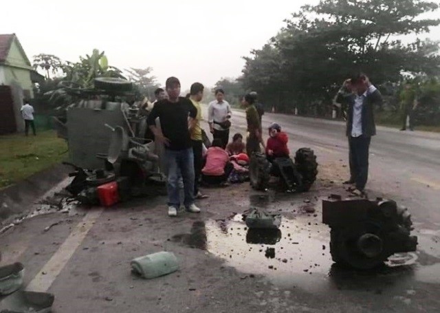 Hiện trường vụ xe tải đâm công nông khiến 1 người tử vong. |