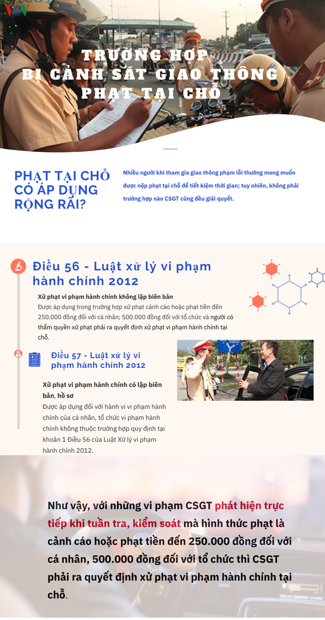 Cảnh sát giao thông phạt tại chỗ trong trường hợp nào? 15/02/2020 16:57 Chia sẻ Những vi phạm CSGT phát hiện trực tiếp khi tuần tra, kiểm soát mà hình thức phạt là cảnh cáo hoặc phạt tiền từ 250 -500 nghìn đồng thì bị phạt tại chỗ. Theo VOV